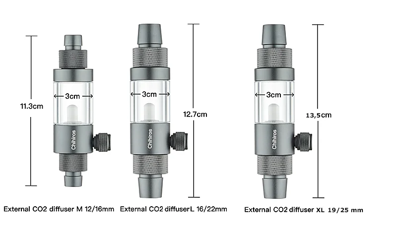 De Chihiros External Inline CO2 diffusor/atomizer is een externe CO2 diffusor van hoogwaardig aluminium. Net als bij andere inline diffusors wordt de CO2 toevoer zo geleid dat deze buiten het aquarium plaatsvindt. De Chihiros External Inline CO2 diffusor wordt in de aquariumslang van het filter naar het aquarium (drukzijde) geïnstalleerd. Dit vermindert een zichtbaar product in het aquarium. De diffuser biedt een effectieve oplossing voor de toevoer van CO2. Dankzij het vervangbare diffuser inzetstuk is langdurig gebruik gegarandeerd. Minimale werkdruk: 0,15 mpa (1,5 bar). De kop van de externe CO2-diffuser (inzetstuk) is gemaakt van keramiek. Vergeleken met een gewone ingebouwde diffuser is er een hogere druk nodig om hetzelfde effect te bereiken.) Voor gebruik de diffusor een aantal uren in het water laten weken. Het keramische inzetstuk kan dan goed volzuigen met water voor een betere werking.