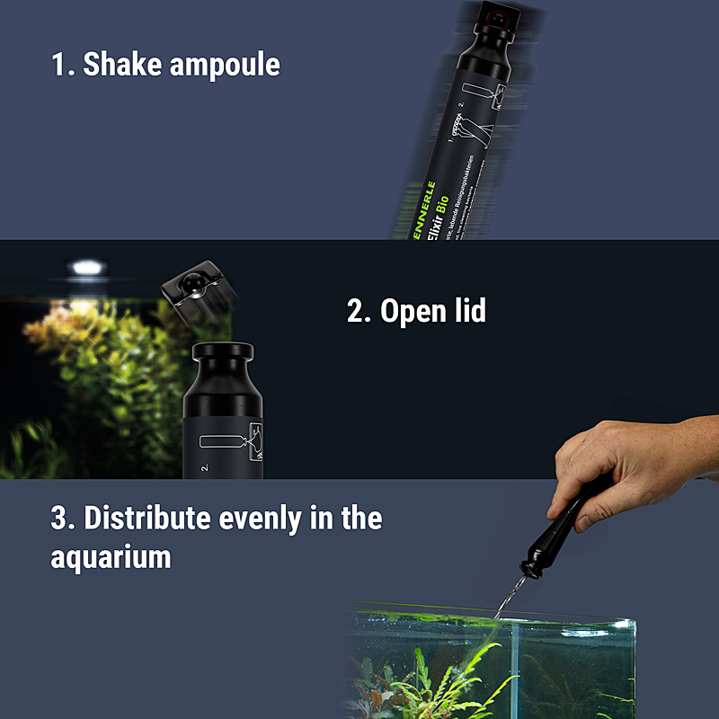 Voor gebruik goed schudden. Product gelijkmatig verdelen in het aquarium.