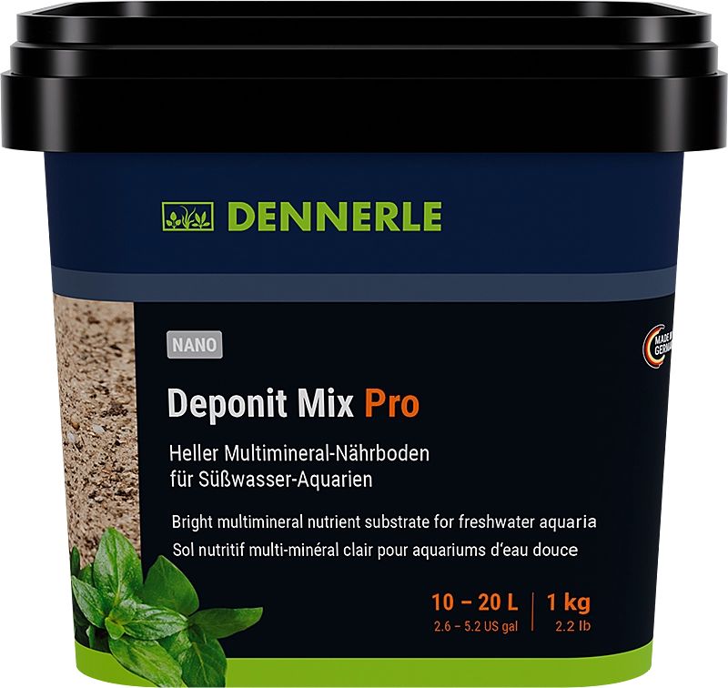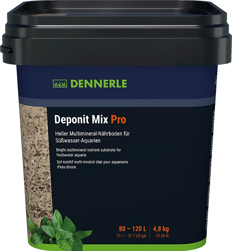 De Dennerle Deponit Mix Pro is een humusrijke, langdurig minerale voedingsbodem die speciaal is ontwikkeld voor aquaria en is gebaseerd op uitgebreide kennis van de natuurlijke biotopen van de meest populaire aquariumplanten. De aquariumplanten worden optimaal voorzien van alle benodigde voedingsstoffen via de wortels. Dit maakt het houden van zelfs gevoelige soorten die moeilijk in het aquarium te houden zijn mogelijk. Verkrijgbaar in Dennerle Deponit Mix Pro Nano 1 kg voor 10-20 liter aquaria, Dennerle Deponit Mix Pro 2,4 kg voor 40-60 liter aquaria, Dennerle Deponit Mix Pro 4,8 kg voor 80-120 liter aquaria en Dennerle Deponit Mix Pro 9,6 kg voor 160-220 liter aquaria. Via pull-down menu is de juiste kg voor het aquarium te kiezen.