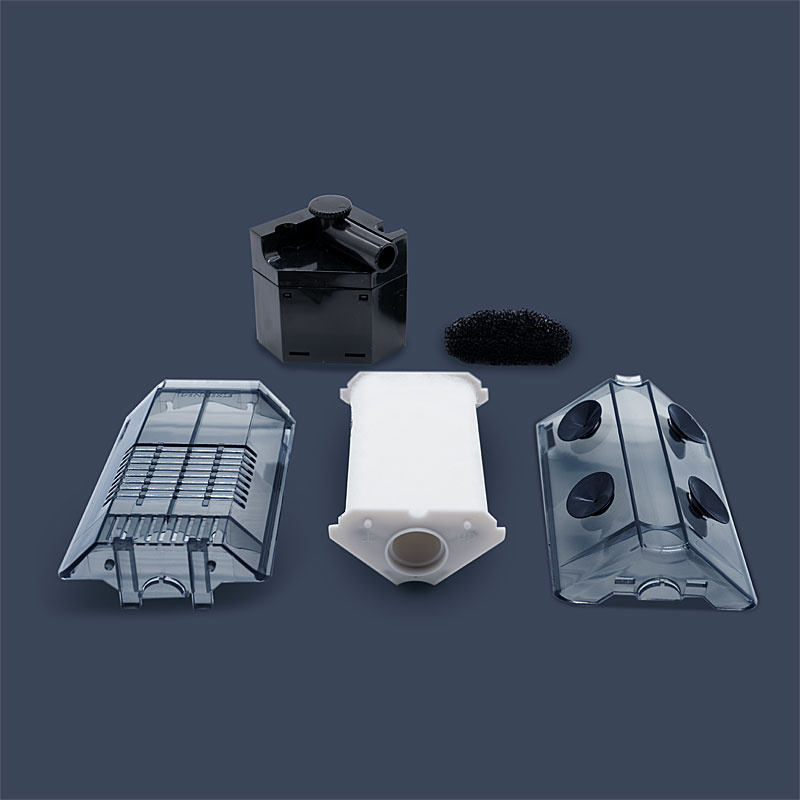 Het reinigen van het corner filter element is kinderlijk eenvoudig. Het filter gewoon aan de uitstroombuis vastpakken en er naar voren toe uittrekken. De achterste helft van het filterhuis blijft in het aquarium zitten. Was het corner filter element in een schone emmer met aquariumwater uit, om de belangrijke filterbacteriën niet te beschadigen. Het filter kan liggend of staand gebruikt worden. Na verloop van tijd wanneer het corner filter element niet meer schoon te krijgen is, of wanneer de kracht van de pomp afneemt, dient u het corner filter element te vervangen. De Dennerle nano Corner filter 40 gebruikt heeft één corner filter element.
