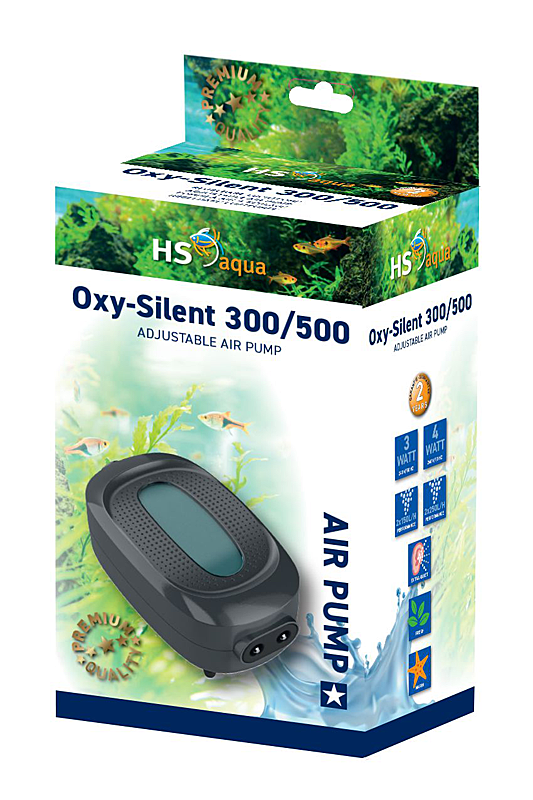 De HS Aqua Oxy-Silent 500 is een elektronisch stille en krachtige regelbare luchtpomp met 2 uitgangen voor diverse soorten aquaria. Dankzij het elektronische regelsysteem kan het luchtvolume nauwkeurig worden ingesteld voor een optimale zuurstofvoorziening. Een extra ophanglus maakt het mogelijk om de luchtpomp aan een wand te monteren.