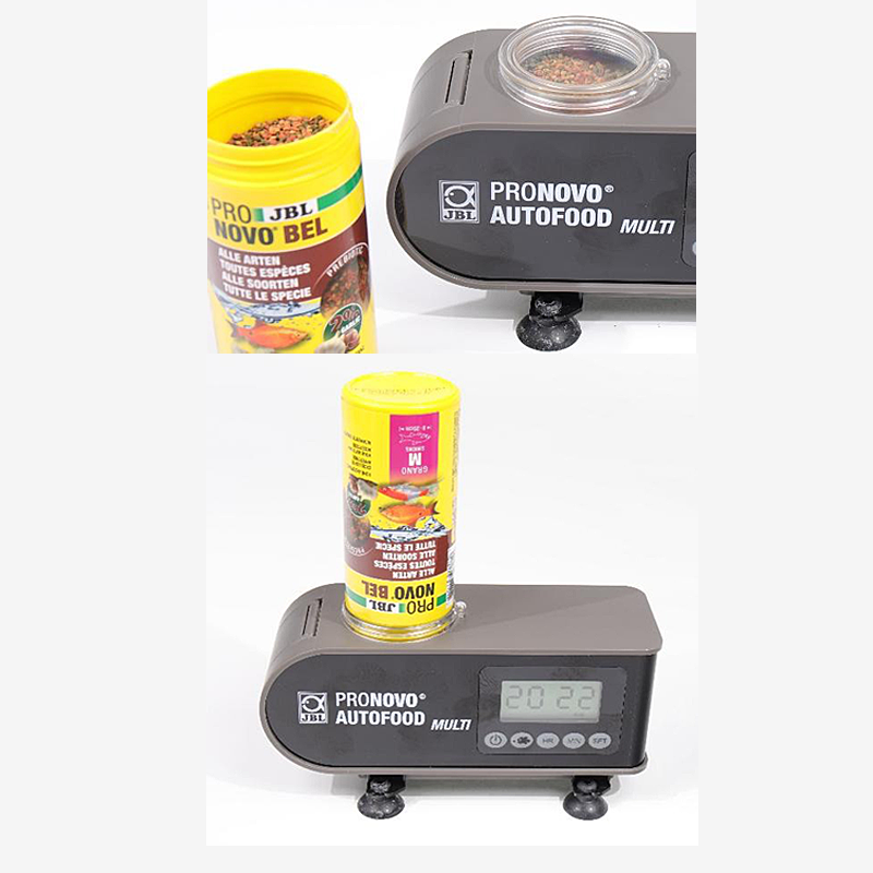 De ProNovo AutoFood Multi is bovendien zeer stil in gebruik en wordt geleverd met 3 verschillende spiralen, geschikt voor: Granulaat tot 3 mm, Fijn korrelvoer, Vlokkenvoer. Met een inhoud van 125 ml is er voldoende capaciteit voor meerdere dagen voeren. Wilt u extra voorraad? Dan is de container uitbreidbaar met een JBL 250 ml granulaat- of vlokkenpotje.