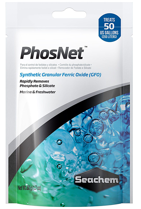 Seachem PhosNet is een zeer effectief filtermateriaal gemaakt van granulair ijzeroxide (GFO) met een hoge porositeit, groot oppervlak en uitstekende bindingscapaciteit. Het verwijdert snel fosfaten en silicaten uit zowel zoet- als zoutwateraquaria en lekt deze stoffen niet terug in het water. Het heeft een sterke binding en is effectiever dan veel vergelijkbare producten en verlaagt fosfaat- en silicaatwaarden tot zeer lage niveaus. Levert geen stoffen terug aan het aquariumwater. Bevat minder stof dan andere GFO-producten, waardoor het gebruik eenvoudiger en schoner is. Geschikt voor zoet- en zoutwater.