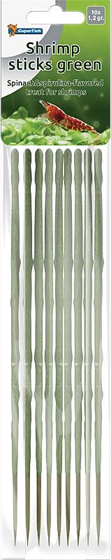 De Superfish Shrimp Stick is een heerlijke gezonde snack voor uw garnalen. De groene sticks zijn gemaakt van algen en spirulina en rijk aan mineralen voor gezonde garnalen. Geef uw garnalen een heerlijke en verantwoorde traktatie met de Superfish Shrimp Stick. Deze voedzame groene sticks zijn speciaal ontwikkeld voor garnalen en andere kleine kreeftachtigen in het zoetwateraquarium. De samenstelling met natuurlijke ingrediënten zoals algen en spirulina levert belangrijke mineralen en voedingsstoffen die bijdragen aan een sterke gezondheid en actieve levensstijl. Ondersteunt kleur, groei en vitaliteit. Plaats een stick eenvoudig in de bodem van uw aquarium of gebruik de speciale Superfish Shrimp Stick houder.
