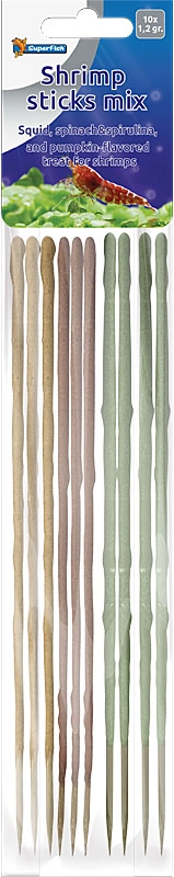 De Superfish Shrimp Stick is een heerlijke gezonde snack voor uw garnalen. De mix bevat 3x Shrimp Stick Geel, 3x Shrimp Stick Bruin en 4x Shrimp Sticks Groen. De sticks zijn samengesteld uit natuurlijke ingrediënten.