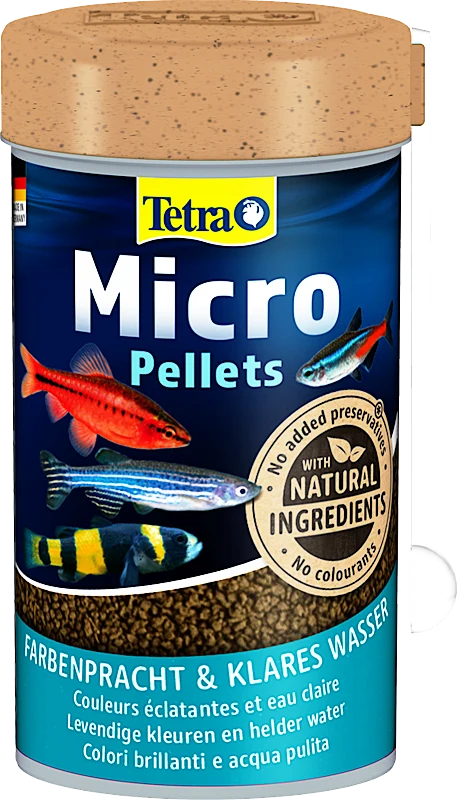 Tetra Micro Pellets zijn met name geschikt als compleet voedsel voor alle kleine siervissen die zich voeden in de bovenste en middelste delen van het water. Met een diameter van 0,4 tot 1,2 mm kan zelfs vis met kleine monden het voedsel gemakkelijk opeten. De kleine Tetra Micro-pellets zijn daarom ideaal voor kleine vissen, omdat ze snel zacht worden in het water, waardoor ze gemakkelijk te eten zijn. Tetra Micro Pellets bevatten voedingsstoffen van topkwaliteit en hebben een uitgebalanceerde formule met ingrediënten op basis van planten en dieren. Als zodanig bieden ze alles wat planten- en vleesetende vis nodig heeft voor een uitgebalanceerd dieet dat is afgestemd op hun behoeften. De rode pellets bevatten ook carotenoïden om de levendigheid van de vis in kleur te verbeteren, terwijl de groene pellets zijn gemaakt van plantaardige ingrediënten om de gezondheid en vitaliteit te ondersteunen. Bovendien is dit complete voedsel zeer goed verteerbaar, waardoor het water helder blijft. Al met al zijn Tetra Micro Pellets een ideaal compleet voedsel voor alle kleine siervissen en jonge, groeiende cichliden en zeevis.