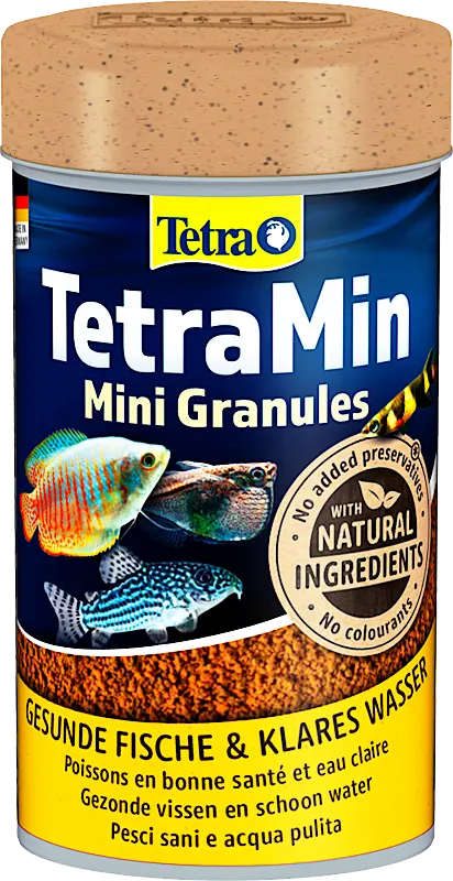 Tetramin Mini Granules is een zorgvuldig geselecteerd mengsel van hoogwaardige voedingsstoffen met vitaminen, mineralen en sporenelementen voor een volwaardige, dagelijkse voeding. Hoofdvoeder in granulaatvorm voor kleine siervissen zoals bijv. karperzalmen en barbelen. Gepatenteerde BioActive formule versterkt het immuunsysteem voor een lang leven. Langzaam zinkend granulaat garandeert een volwaardige, uitgebalanceerde voeding en bevordert een natuurlijke groei. Uitstekende vertering door alle jonge en kleine siervissen.