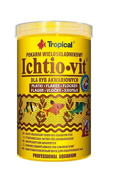Ichtio-Vit is een multi-ingrediënt vlokkenvoer. Ichtio-Vit is een universele vlokkenvoer die bijzonder goed is en zich al vaker heeft bewezen als top voer. Het kan gebruikt worden als dagelijkse voeding van de meeste populaire omnivore vissen. Het is vervaardigd uit zorgvuldig geselecteerde ingrediënten van plantaardige en dierlijke producten. Door de evenwichtige reeks vitaminen en sporenelementen bent u verzekert dat de vis goed groeit en ontwikkelt. Bevat ook gestabiliseerde vitamine C, die het immuunsysteem van de vis verbetert en versnelt de genezing van wonden en schaafwonden.