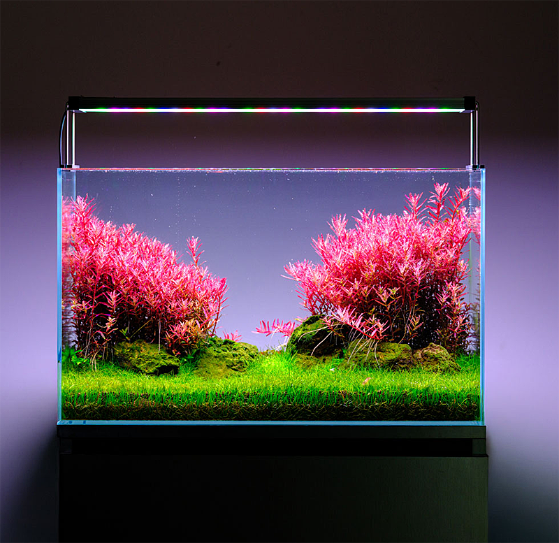 - Groen (500–600 nm): zorgt voor visuele balans en versterkt de dieptewerking van het aquascapen.